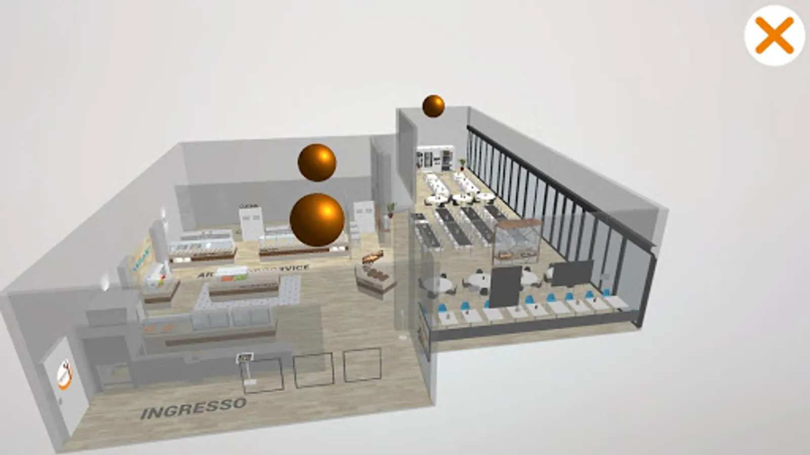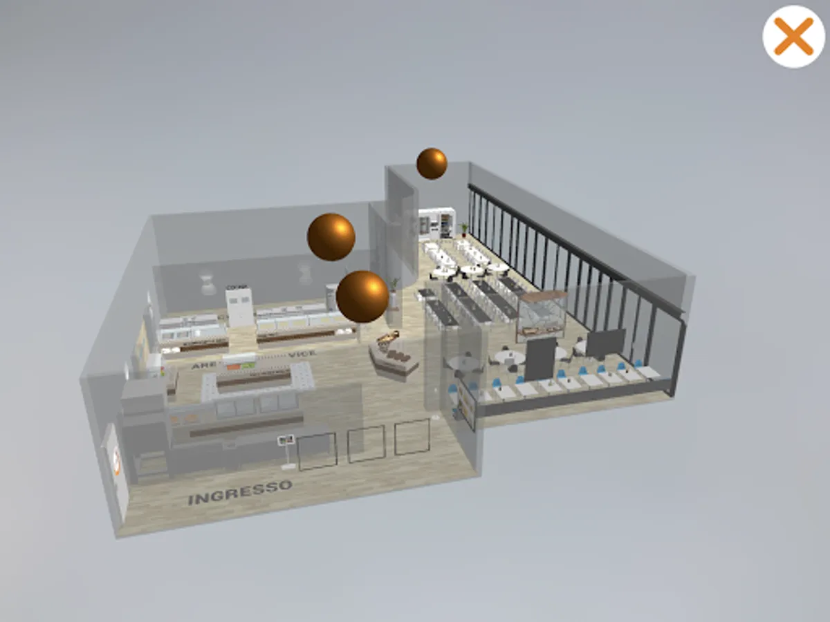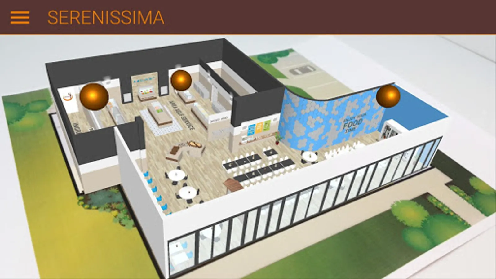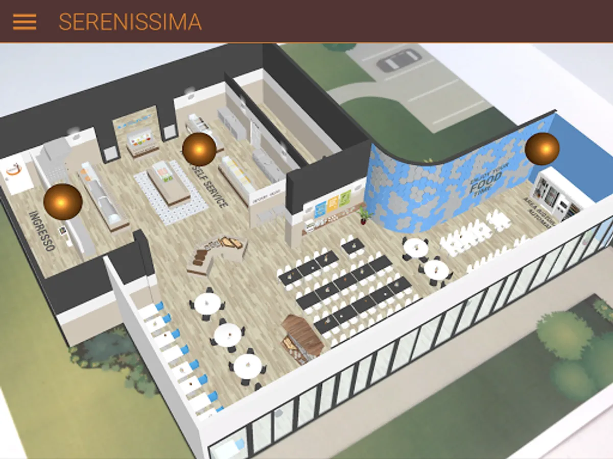 Serenissima Ristorazione presents its augmented reality app that will guide you in visiting a company restaurant. Discover the flows, gastronomic islands and the area of consumption. Experience the augmented reality of our restaurants from the comfort of your home or office, by downloading the tag and framing it with the app's internal camera. With the innovative use of augmented reality, the floor plan comes to life, showing the furniture, the materials, the graphic panels and the proposals of the self line. But it does not end here: you can find out how to manage the interiors and exteriors of your company canteen, from wood, iron or other metal surfaces, all in a few simple "taps"!