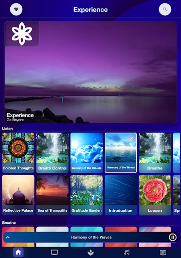 Experience is NOT another boring meditation App! Experience is engaging, putting yourself in control of your thoughts and emotions through powerful imagery, sounds, and more. Promote long-term healing and establish control over your feelings!