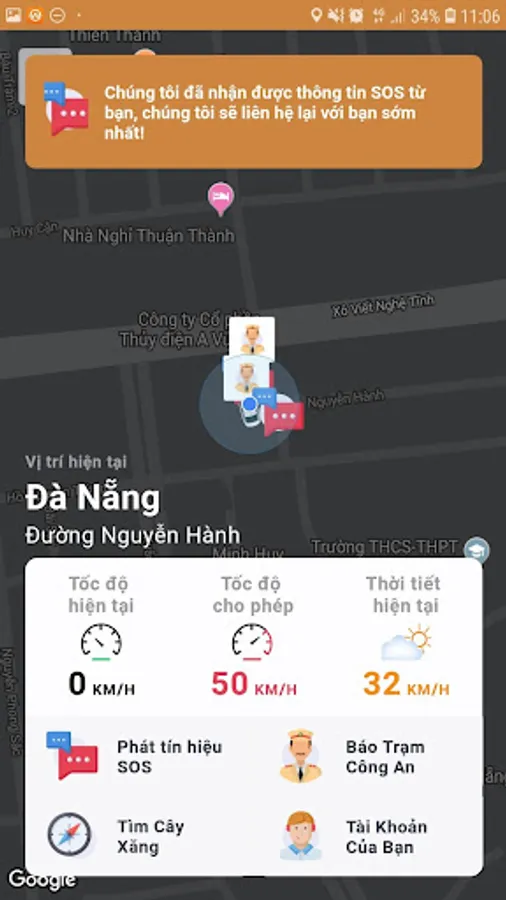 3. Display necessary information on the route, including current speed, speed limit, alert police stations on the route.