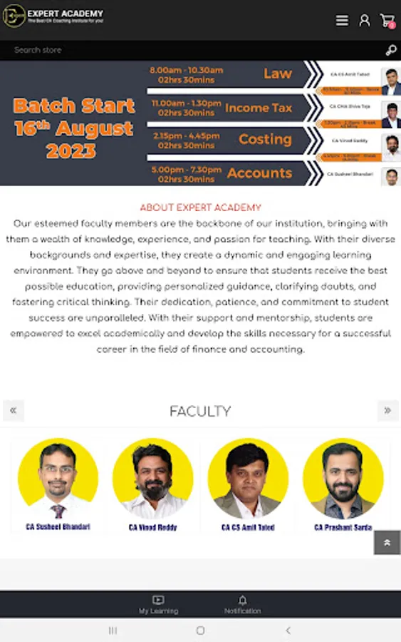 Expert Academy is White Labelled App is a learning management system that offers a range of features to students preparing for the CA course. The app includes MCQ exams, video lectures, live classes, and other learning resources.