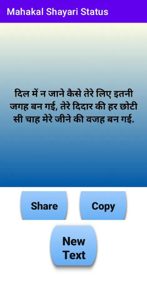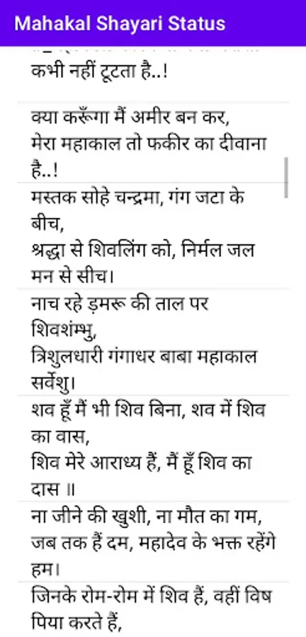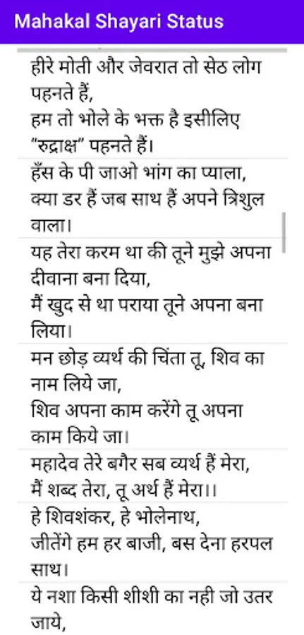 Mahakal Shayari Status app contains one of the best status app. you can read any Shayari status and share easily to everyone ( on social media ).