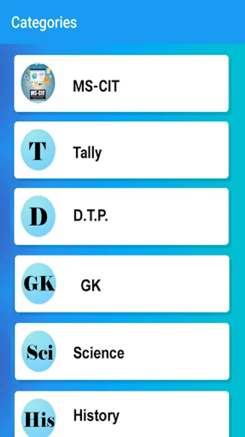 Subject Selection: Users can select their desired subject from the available options, including MS-CIT, Tally, MS. This allows them to focus on specific areas of interest or prepare for particular exams.