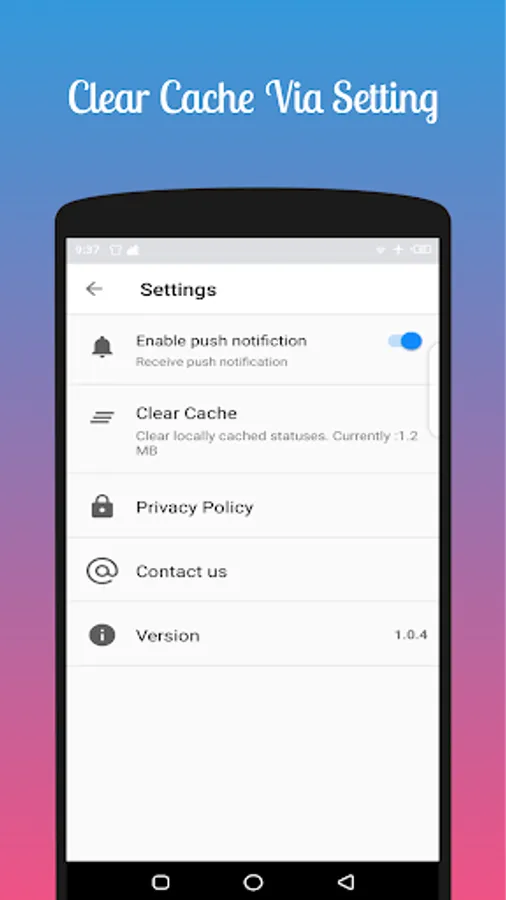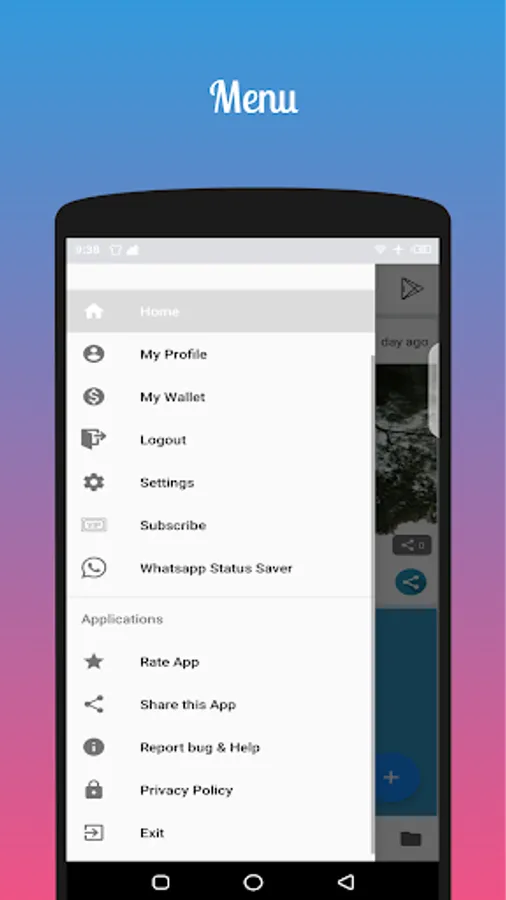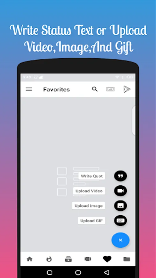 Watch video status, Write status, Quote, Image, Upload status video, GIF.