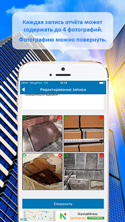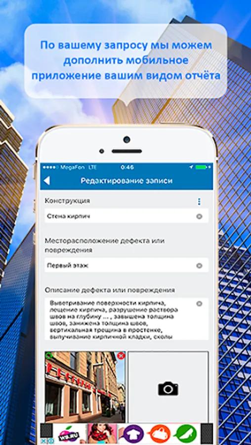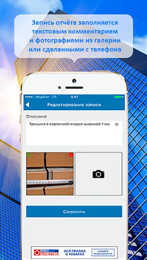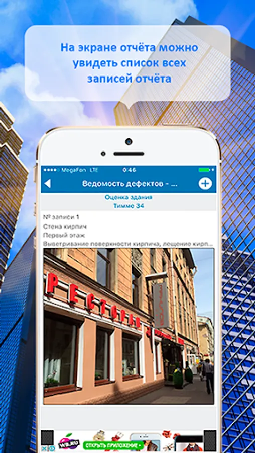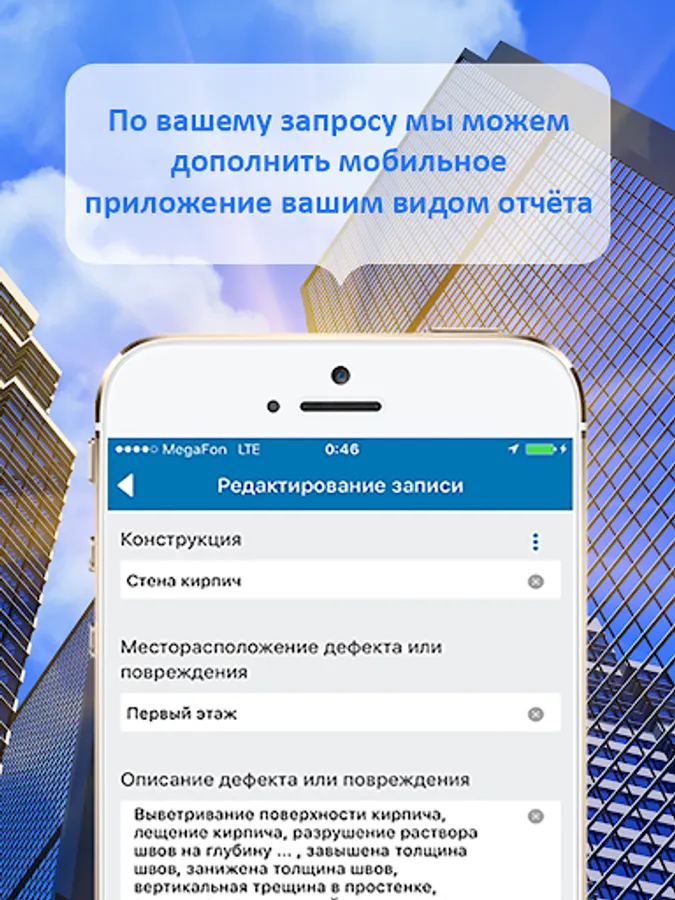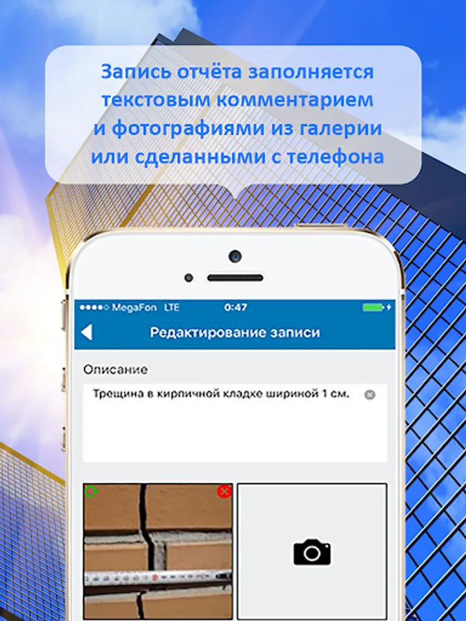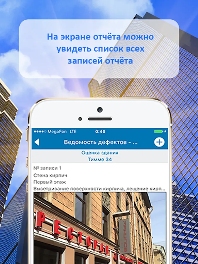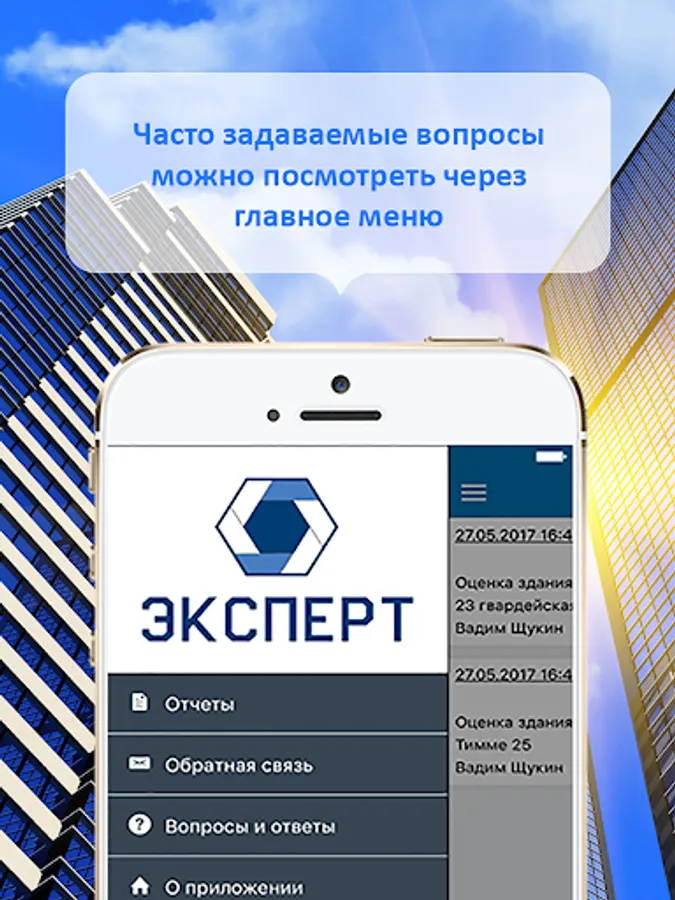 Mobile app “Expert Lite” allows you to quickly and easily prepare a report using their mobile phone while in the object of examination with photos and comments and send it to your chosen e-mail address as doc-file Microsoft Word is already in a structured form and is convenient for future use.