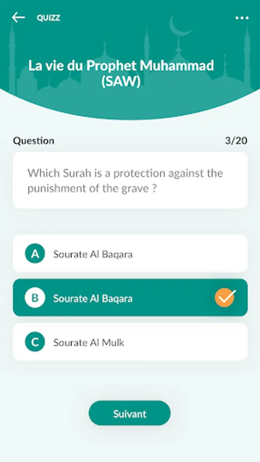 A quiz on Islam is integrated to allow you to test your knowledge of the religion of the prophet Mouhamed (SAW).