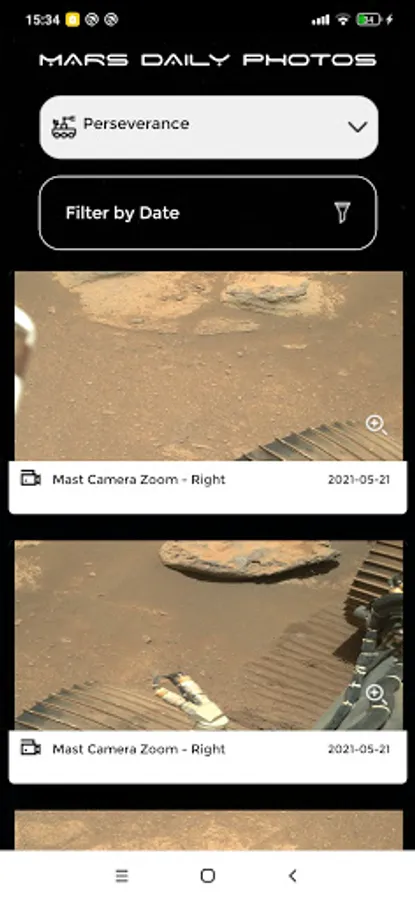 You can explore planet Mars by photos taken from Perseverance and Curiosity. Select a date and check the images taken from different cameras installed on the rovers.