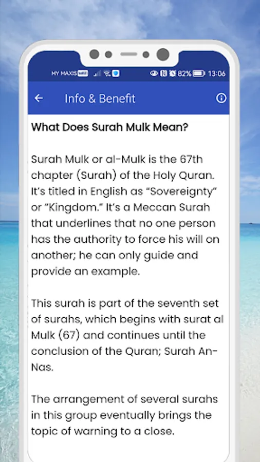 This App have Audio, Information, Benefit And Translation Of Surah.