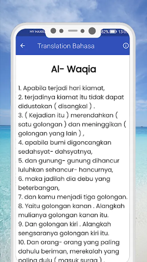 Aplikasi Mengandungi Bacaan , Informasi , terjemahan Dan Kebaikan Surah .