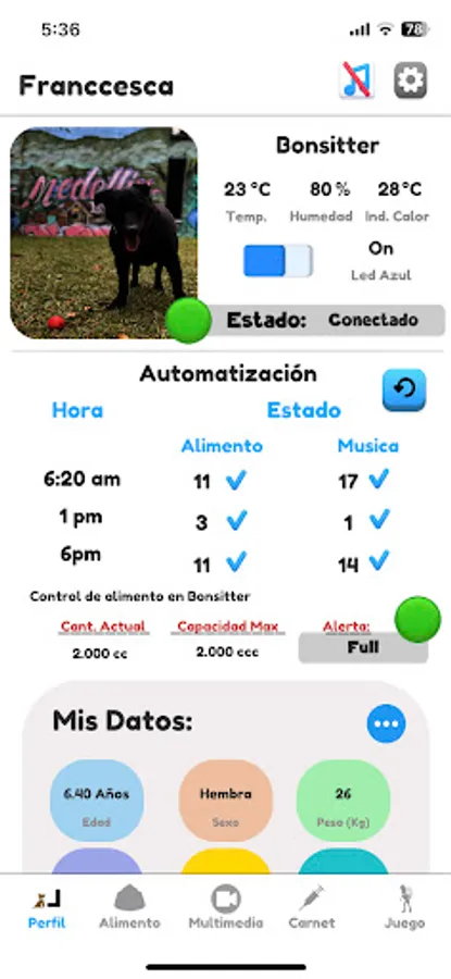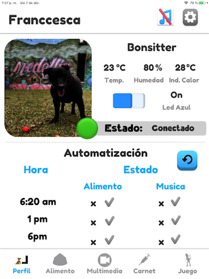 What is the Bonsitter: It is a physical device that you connect to the internet at home so that through this app you can feed, watch, play songs and play with your pet.