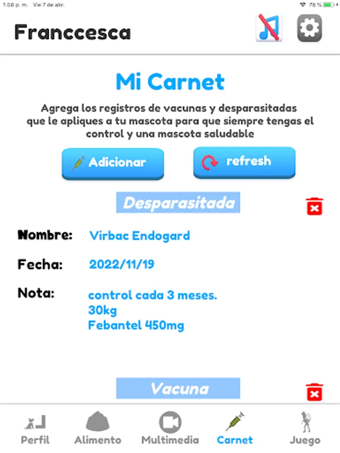 We also add a free archive of stories on your profile about important events that you carry out with your pet: such as vaccinations, deworming, medical appointments and others.
