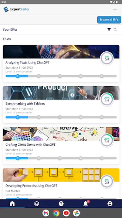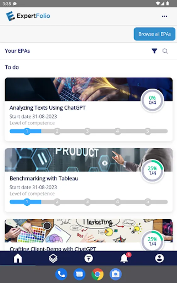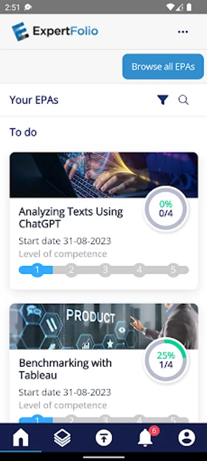 With the ExpertFolio Business app, you always have your portfolio at your fingertips. You have access to the most important functionalities of ExpertFolio Business which you use every day; you can check your EPA progress, forms can be uploaded, and it's super easy to create assessments.