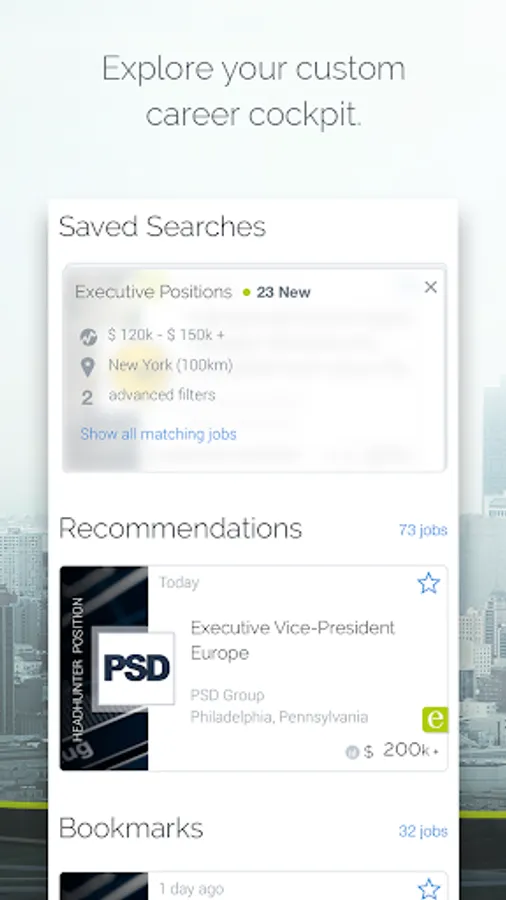 A comprehensive selection of new executive positions, added every day, and an exclusive network of headhunters make Experteer the leading choice for senior professionals looking to move forward in their career. Download the app, and give your career the boost it deserves!