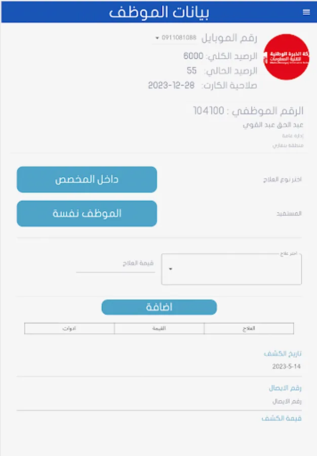 This application was made for the benefit of the Central Bank of Libya - Benghazi, in order to allow fast and reliable treatment and obtain medicines from medical centers and pharmacies contracted to provide these services