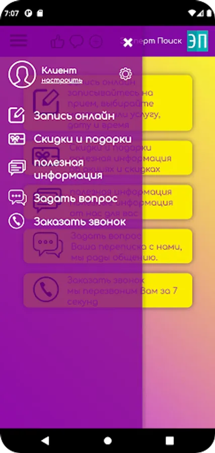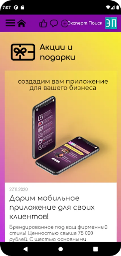 Corporate application of the marketing company "Expert Poisk"