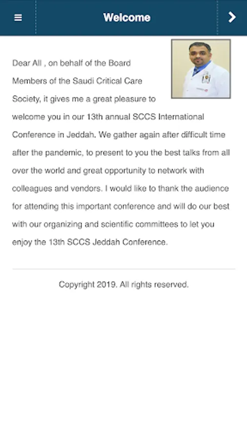 Welcome to our 13th SCCS conference, one of the biggest critical care conferences in the middle east where local and international speakers are invited to discuss all the updated evidence in critical care medicine filed and share their experiences.