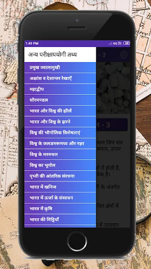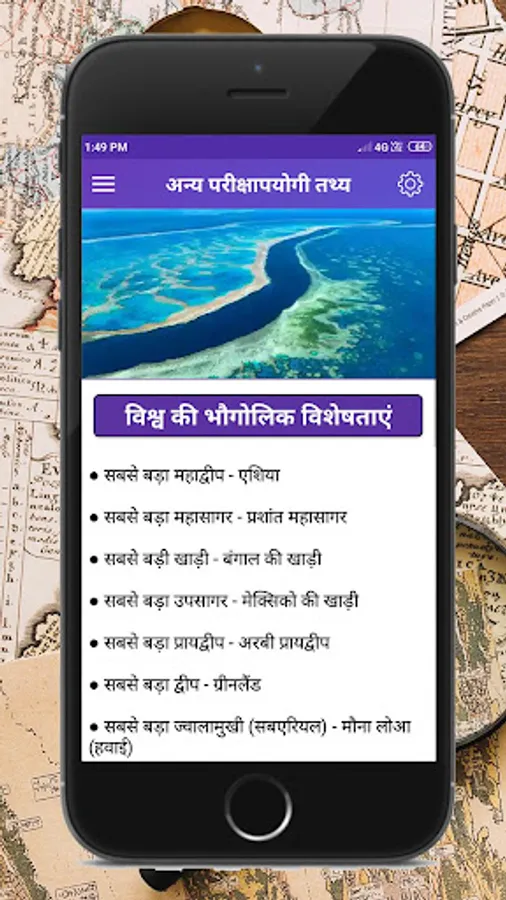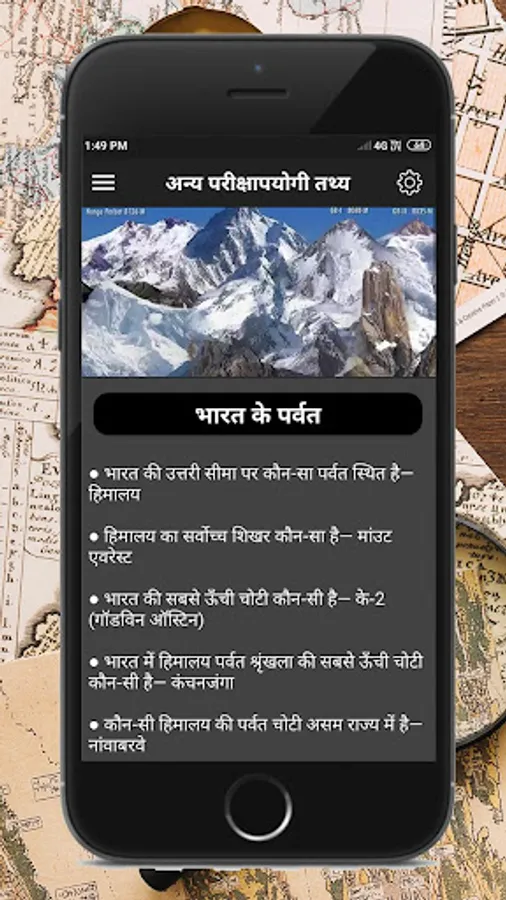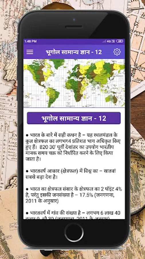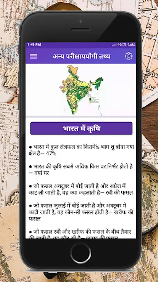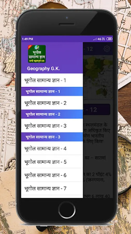 Indian Geography is a hindi general knowledge app. In this Indian Geography apps will you found most important gk in hindi offline. In this GK Hindi ( General Knowledge in hindi app ) application we will cover all the topics like Geography Indian.