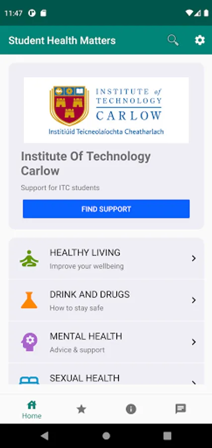 The 'Student Health Matters' app enables Irish students to access safe, evidence-based and reliable health information instantly at the touch of a button – all in one place.