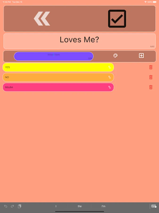 Using our large number of preset Luck Wheels and/or creating you own ones, Luck Wizard will provide a nice, just for fun, an app that will help in many daily decisions.