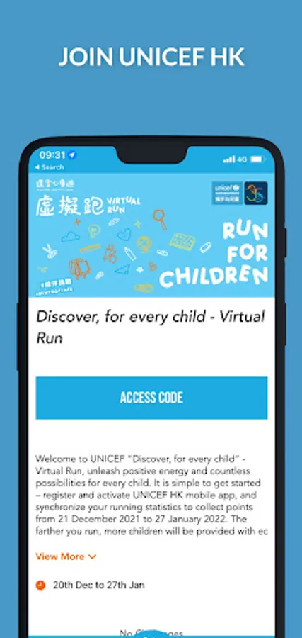 Simply download UNICEF HK app and complete your registration, you will receive an activiation code for “Discover, for every child” - Virtual Run. Once activated, on the app, you may start running and synchronize with your phone or designated wrist band to accumulate points.