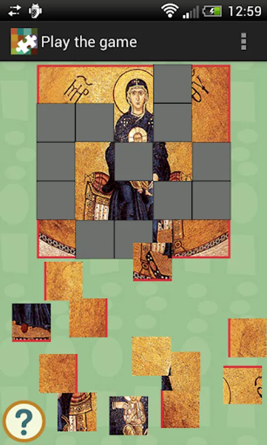 Complete the three puzzles to move into the next level of the game. Each puzzle depicts an important part of the byzantine church decoration.
