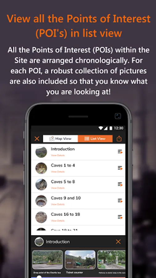 To make your travel to the monuments and heritage sites in India interesting and comprehensive, the App divides your destination into multiple Points of Interest or POIs. These POIs are marked on a map-overlay. Once you reach a site covered by the App, the GPS feature auto-locates you and prompts you to open the site tour. It then directs you to the first or the POI nearest to you, to start the tour. Explyore has interesting audio content for each POI, which auto-plays when you reach your desired POI. It also provides instructions for reaching the next POI. This way, using audio-narratives, Explyore walks you through all the POIs within a site.