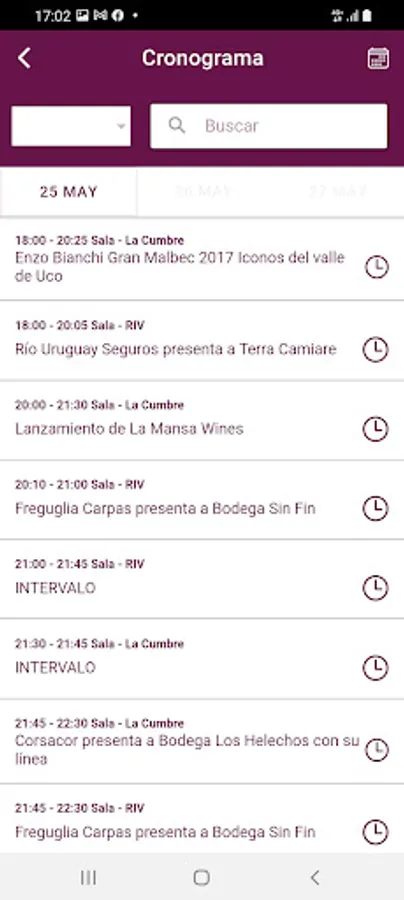 Within the application you will find all the information of the event: