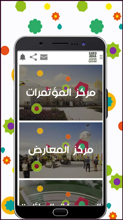 Therefore, we advise you to download the Expo Qatar application - to learn more about the areas of the Expo exhibition, as the State of Qatar has created very wonderful areas around agriculture, gardening and the environment. The exhibition contains 10 places to visit that were designed specifically for this version of the exhibition, so we designed the Expo application. Qatar and we have put it in your hands to be your guide in getting to know this exhibition