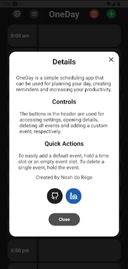 OneDay is a simple scheduling app that can be used for planning your day, creating reminders and increasing your productivity.