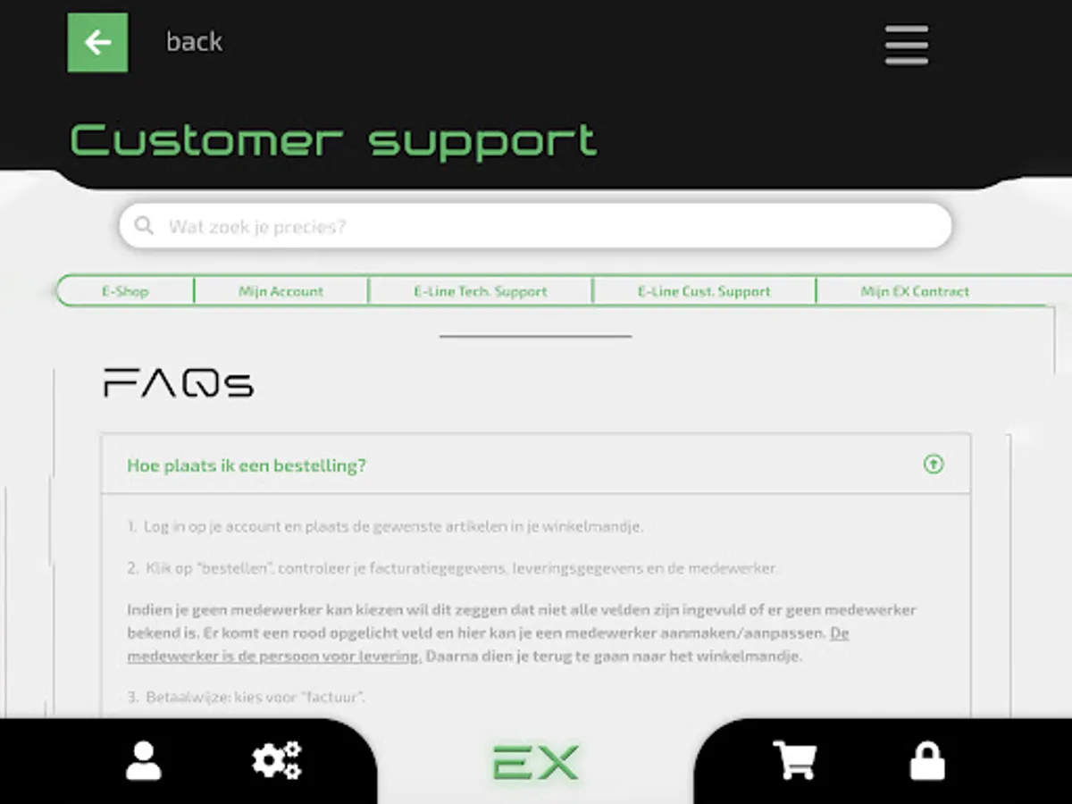 3. Access to the E-Line support team: You will always receive the help you need or you can easily consult the FAQs for answers to frequently asked questions and more;