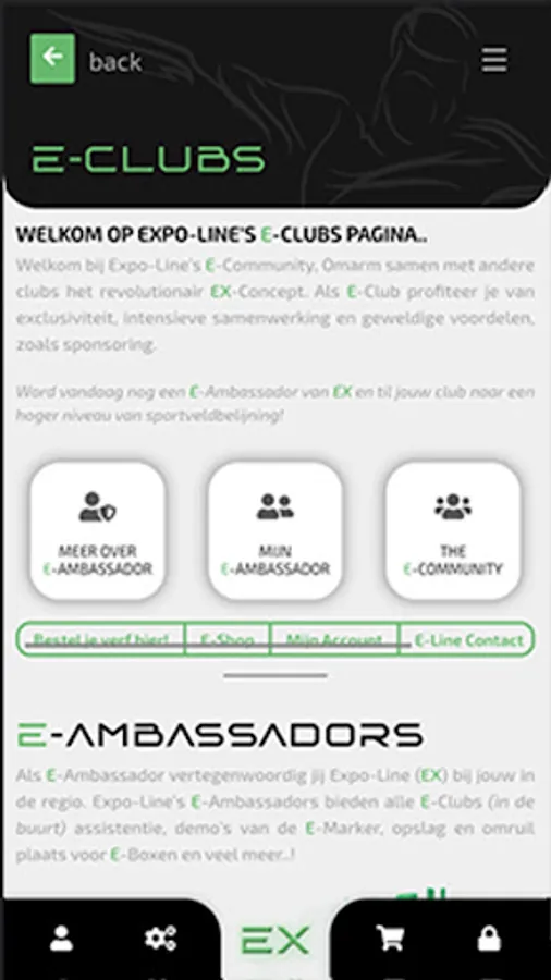 4. Access to the E-Clubs community: A network of regional and provincial clubs in Flanders, the Netherlands and Wallonia. These clubs are part of the EX-Concept and are part of the community.