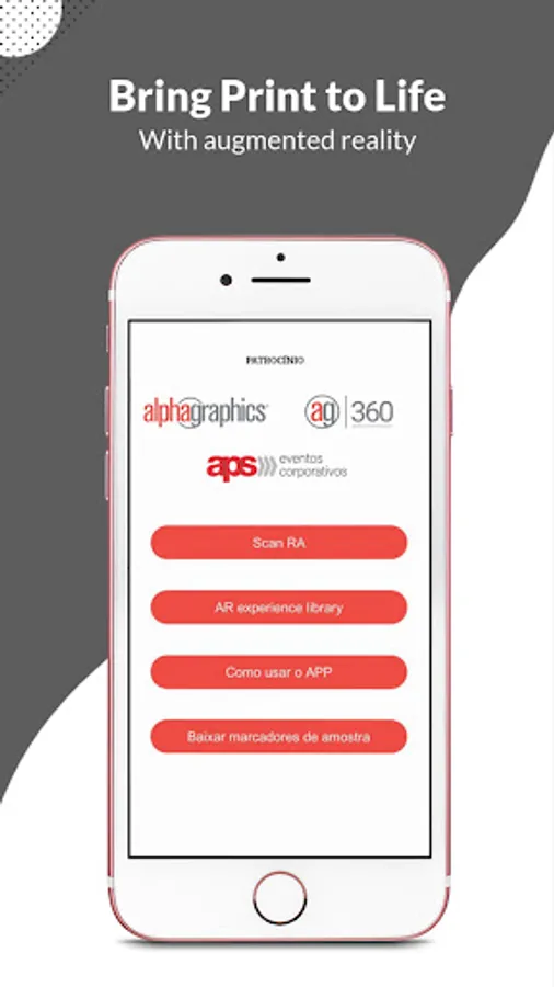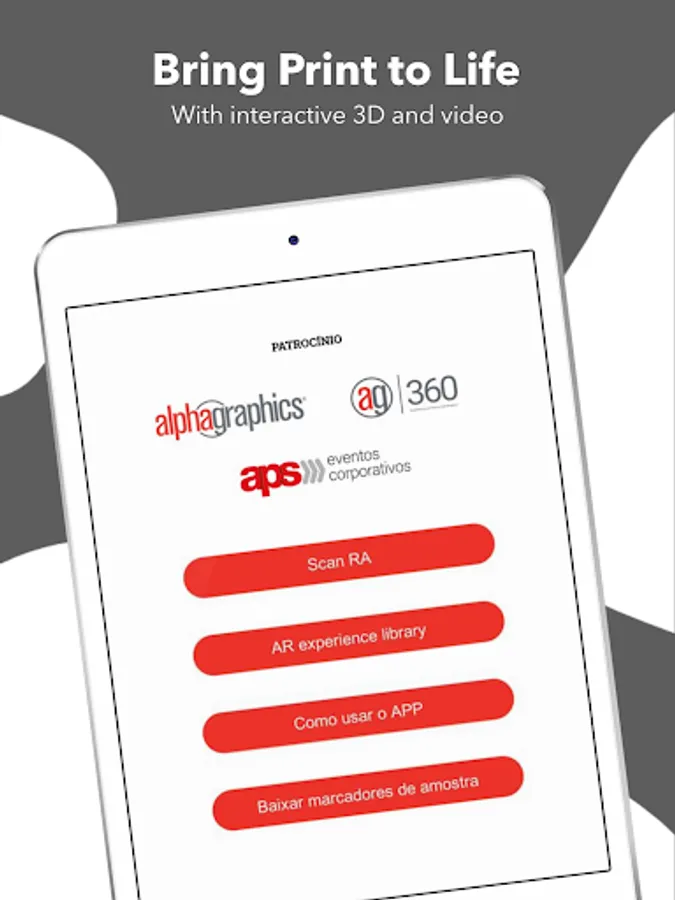 Augmented reality application to interact the virtual with the real through pre-registered images and expand the way of relating to reality through your smart phone. The step-by-step procedure for its use is very simple: after opening the application and with the user's authorization to access the camera of his device, direct the cell phone camera to the pre-registered printed image and watch virtual contents that will be associated with the respective Image. If you don't have pre-registered images to do the experiment and see how the application works, please click on the "download sample markers" button and print the image listed there to do the tests or download the test image through this link: http:/ /i.jumpto.ag/card_ag360, print the image and point the phone's camera with the augmented reality app at the image. For more information and support, please access the website www.ag360alphagraphics.com.br or send an email to suporteag360@alphagraphics.com.br.