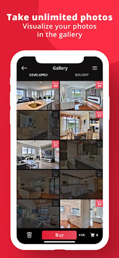 The App is free to download. Take as many photos as you want for free. Photos are marked with a watermark. In order to take off the watermarks, save and use the HDR pictures you will need to purchase photos individually or in bulk. Buy only the HDR photos you want. 1 HDR picture starts at $0.99. Lower price packages available to purchase.