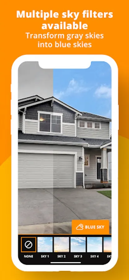 Shoot the outdoor of a property and use the Blue Sky feature that allows you to replace a gray sky with a beautiful blue sky. This process is done in a second, and gives you stunning results.