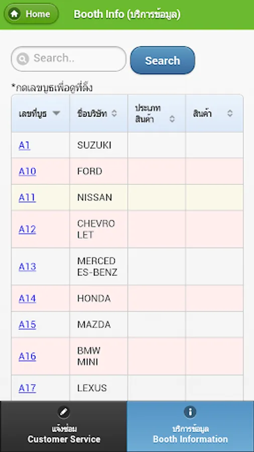 Two. Show list of booths inside selected exhibition including booth's info such as company name, product name, and location.
