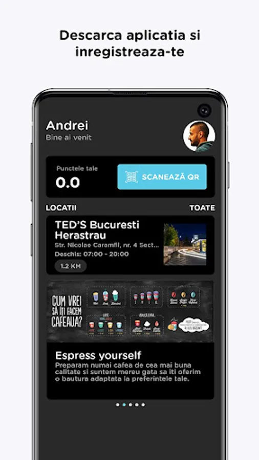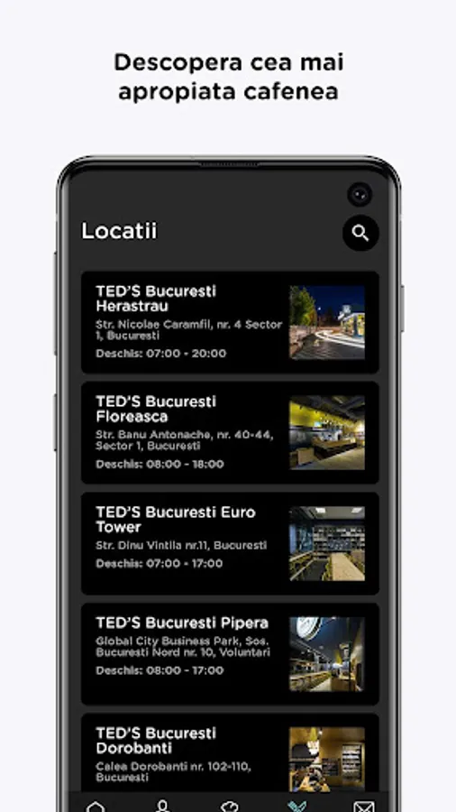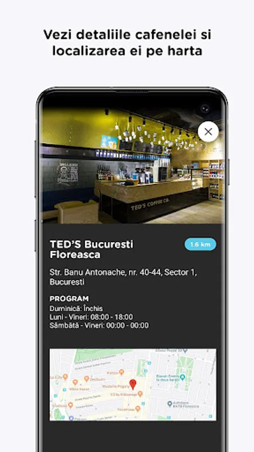 - Oferte si locatii. Esti mereu la curent cu noile oferte si beneficiezi de informatii legate de cea mai apropiata cafenea, distanta, adresa, harta si programul acesteia.