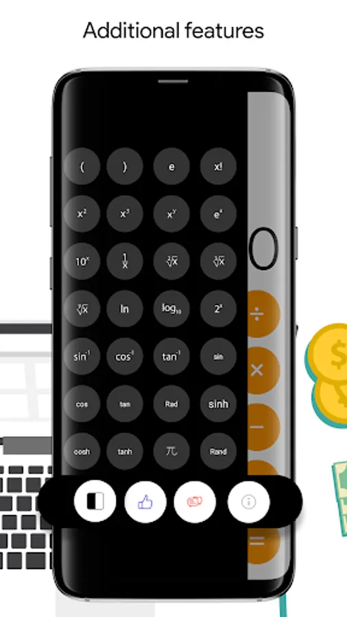 - Do scientific operations such as trigonometric, logarithmic, calculator 16 digits, fraction calculator, and exponential functions