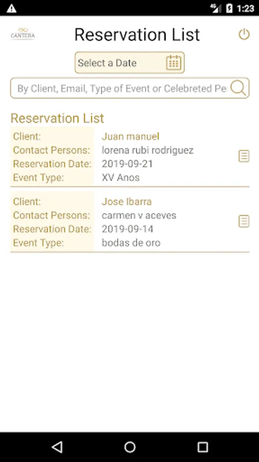 Cantera Events, muestra los eventos disponibles de la agenda del sistema Cantera.