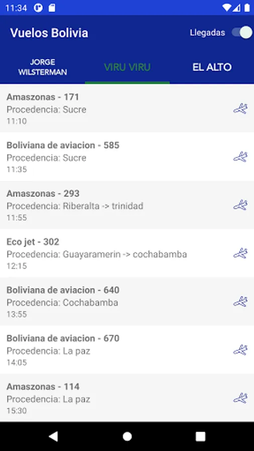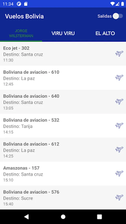Flights Bolivia is an application that allows you to see the flight itineraries of all the airlines established in Bolivia, Enjoy your flight.
