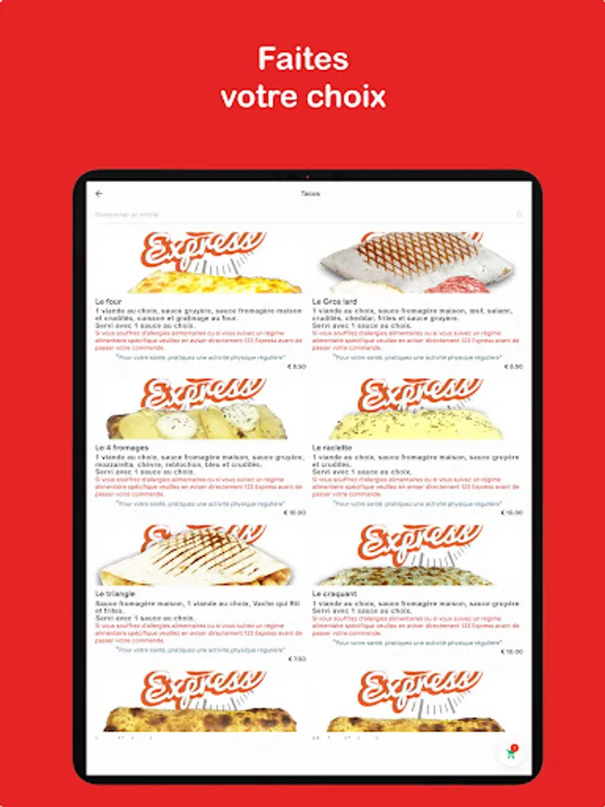On the 123 Express - Beaune application in the city of Beaune, pizza, Tacos, salads, sandwiches, panini and tex mex.