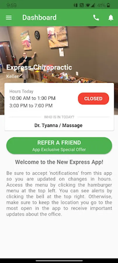 Express Chiropractic is an app designed to enhance the overall customer experience for our practice members. With the Express Chiropractic app you will be able to: