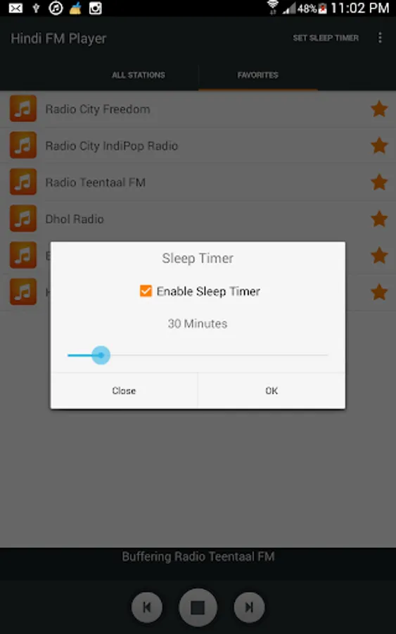 ✔ Sleep Timer – automatically turn off FM Player after predefined Timer.