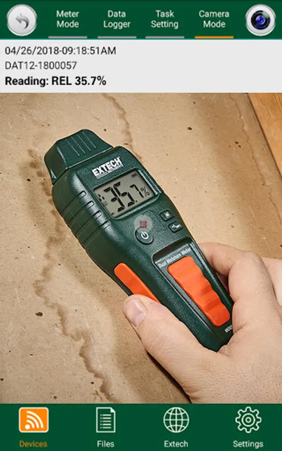 • Take snapshots of the measurement area with the connected Phone or Tablet camera