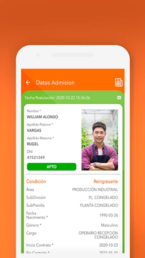 Obtain through a reading, data of the applicant. In this way, to be able to manage data required for your hiring.