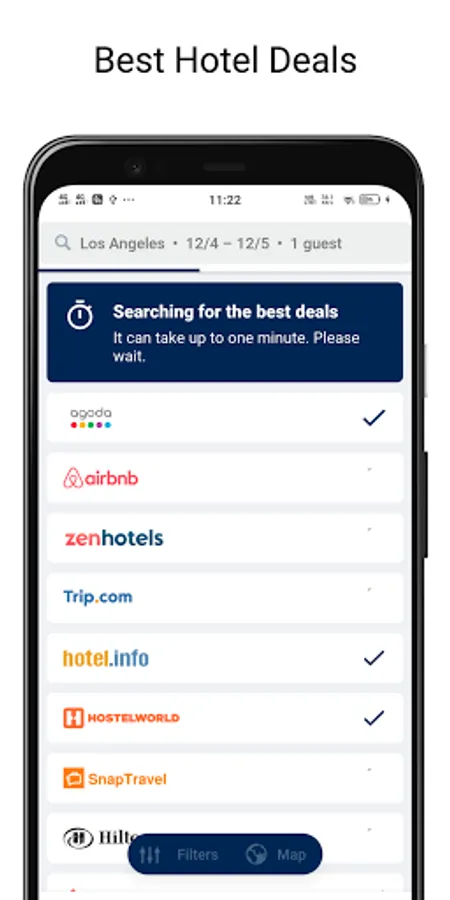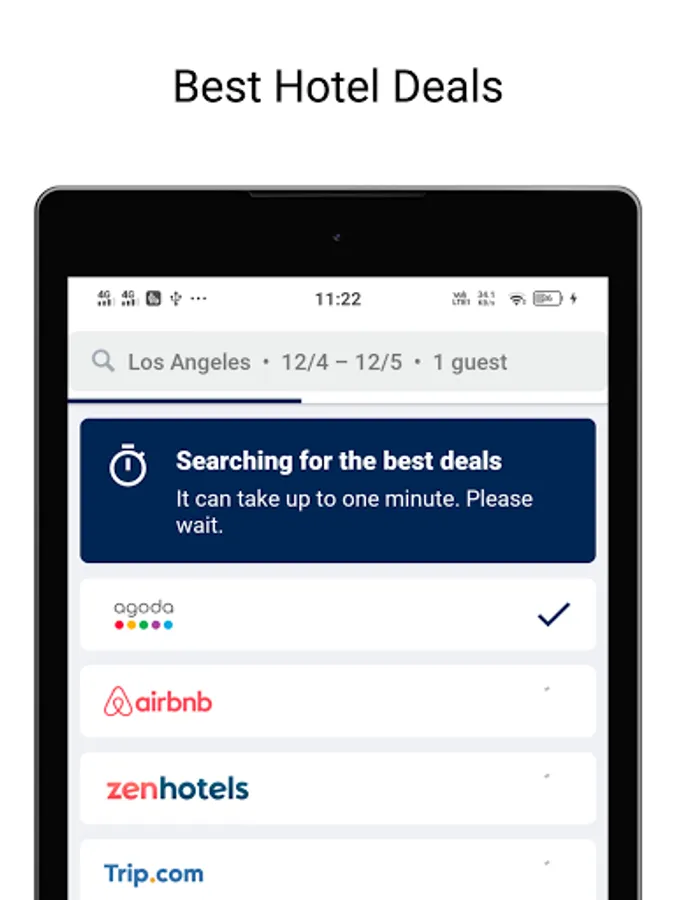 Our app helps in finding the best low cost hotel booking deals for your cheap extended stay. We also help in finding last minute hotel deals for your stay. We are affiliated with all major hotel brands like Extended Stay America, Best Western, Red Roof Inn, Accor, Motel One, Travelodge, IHG, Marriott, Comfort Suites, Wyndham Resorts & Hotels, Econolodge, Hyatt, America's Best Value Inn, Four Seasons, Sheraton, Super 8 motels, Hilton, Holiday Inn, My6(Motel6), Hotels tonight, Days Inn Motels, Jameson Inn and Suites, Ritz Carlton, Candlewood Suites, Microtel Inn Motels, Towne Place Suites, Shangri-La, etc. Search & compare prices from all the major hotel booking providers & agencies to get the best hotel deals with our hotel reservation app.