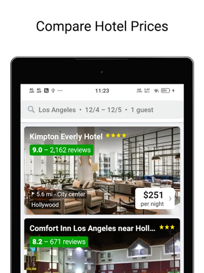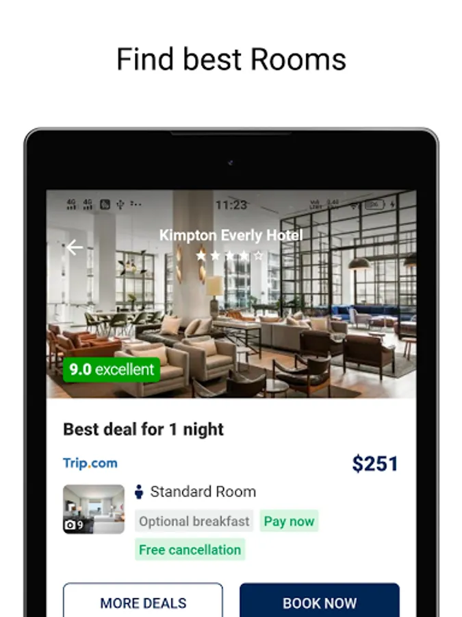 Get the hotel discounts and offers with our booking app. Also, find the hotel deals in weekly motels & hotels tonight, long-term stay rooms, etc., compare the prices, and book hotel suits you. Our app helps with booking the hotel quickly with the latest UI/UX. Hotel reservation is made simple with our hotel deals app.
