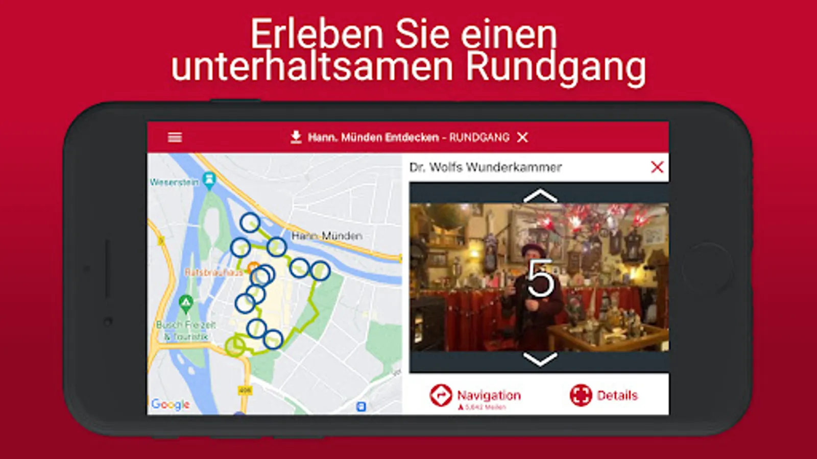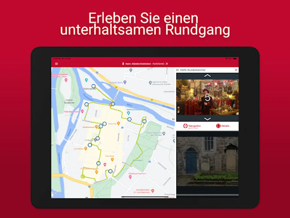 The "Discover Hann. Münden - App" allows you an interactive and multimedia tour through the picturesque half-timbered and three-river city of Hann. Münden, which Alexander von Humboldt described as one of the seven most beautifully situated cities in the world. During the tour, you will be accompanied by different characters to 12 stations in the old town, which will be visible as an augmented reality experience in short film sequences.