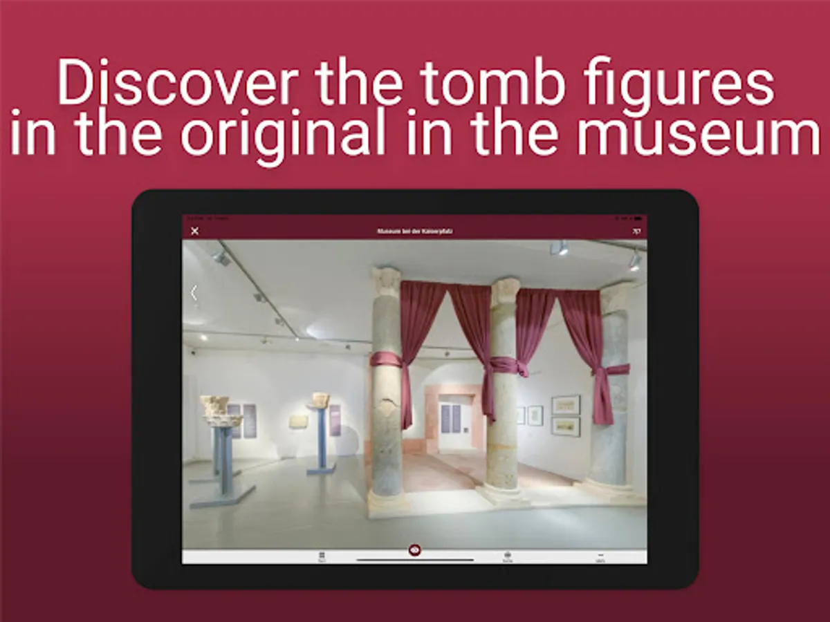 The highlight is the presentation of a monumental grave monument with three grave figures that were found in the north of Ingelheim at the end of the 19th century. Using 3D scans, these figures were reconstructed three-dimensionally and in color and embedded in a 360° panorama. In this way, the former monument, of which nothing has been preserved, can be viewed in its original surroundings. The Roman settlement, agricultural estates as well as fields and farmlands complete a lifelike picture of antiquity.