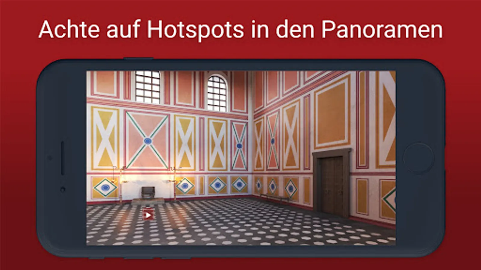 Characters and actions are embedded in the 360 degree panoramas as video sequences and can be triggered by tapping on "hotspot links". The app has offline capability and allows you to download all content to your smartphone or tablet in advance if you want to be independent of mobile internet access on site.