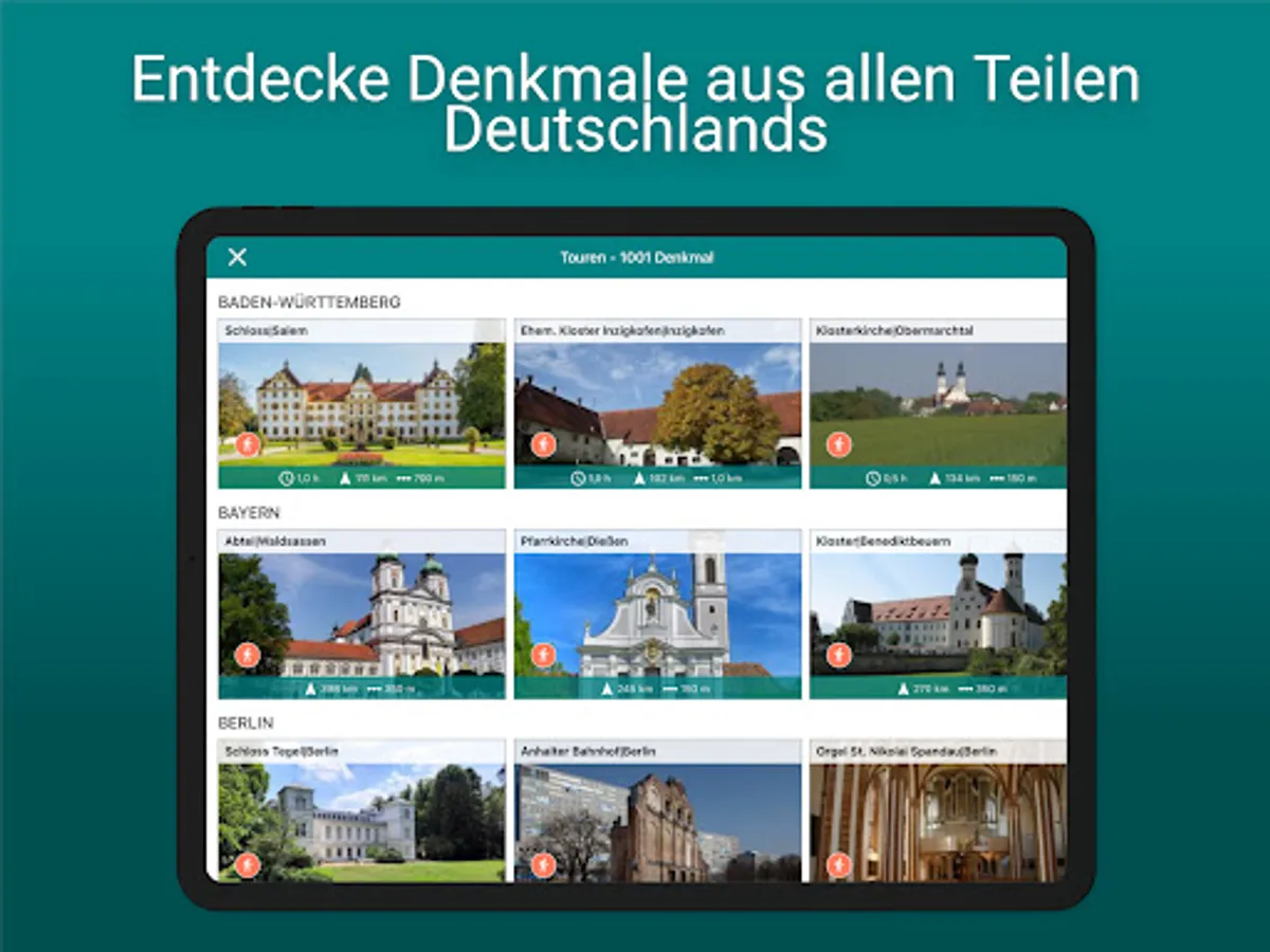 For those interested and visitors, the monument app offers interactive tours to around 1,000 monuments. These include well-known sights such as the Berlin Cathedral and the Zollverein colliery, but also gems such as the Zinzendorf Castle in Saxony or the Paradies water art facility in Baden-Baden.