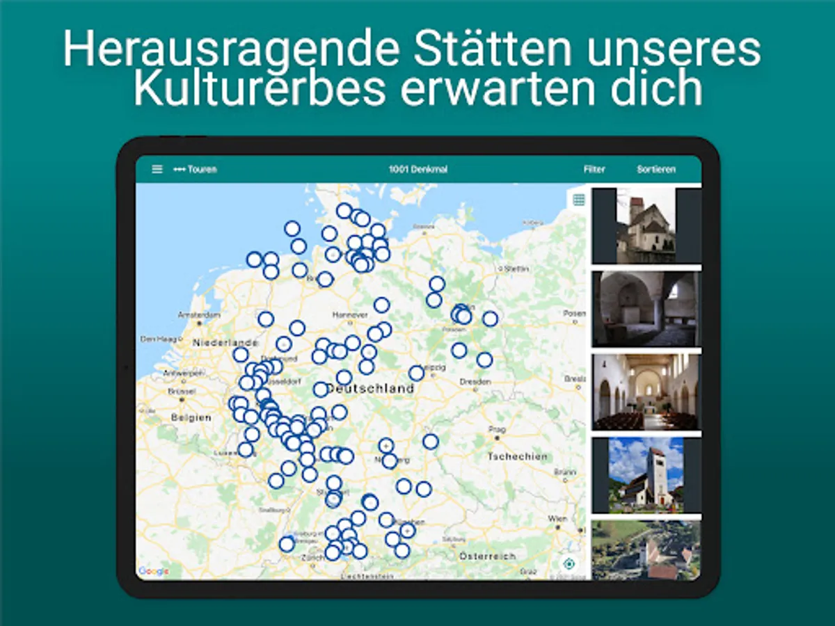 In addition to the monument app, the website www.1001denkmal.de will be set up with further background information and extensive video material on selected monuments.